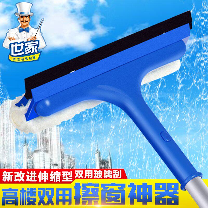 Family cleaning guard window wiper double-fork glass scraper household double-sided dual-use telescopic rod glass brush cleaner