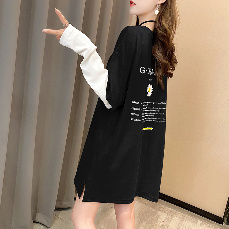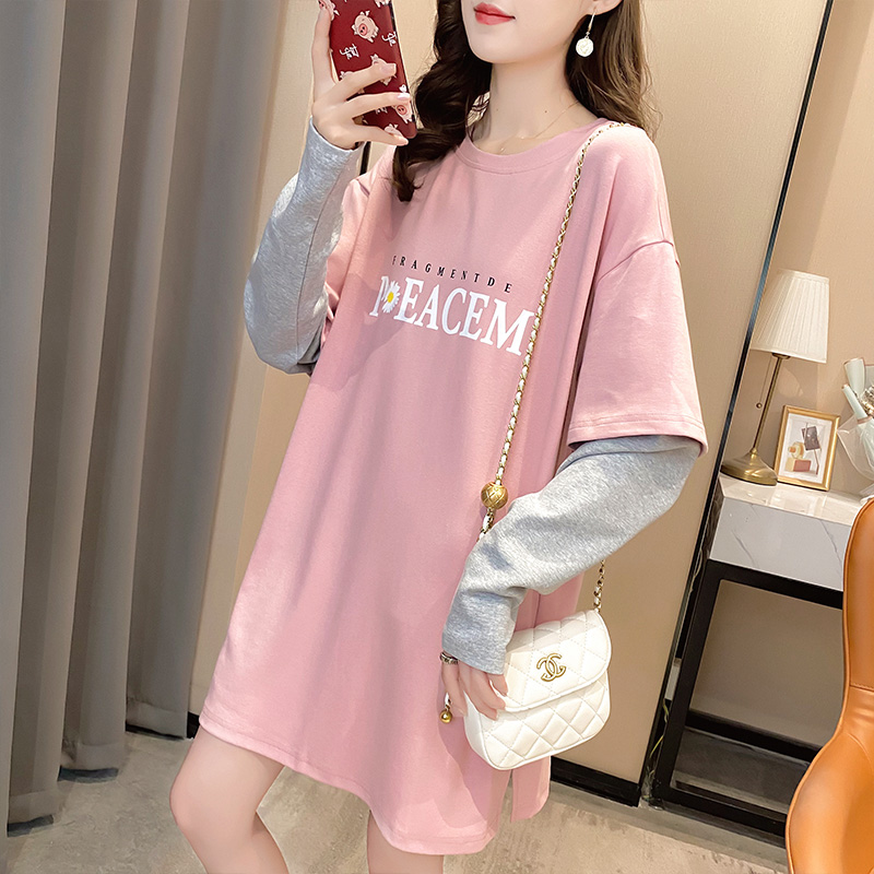 2022 autumn new maternity clothes personality trendy mom ins fake two pieces loose large size long-sleeved T-shirt female autumn