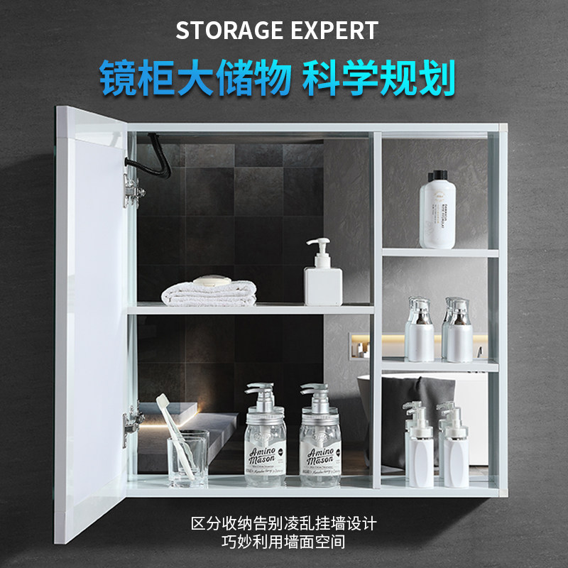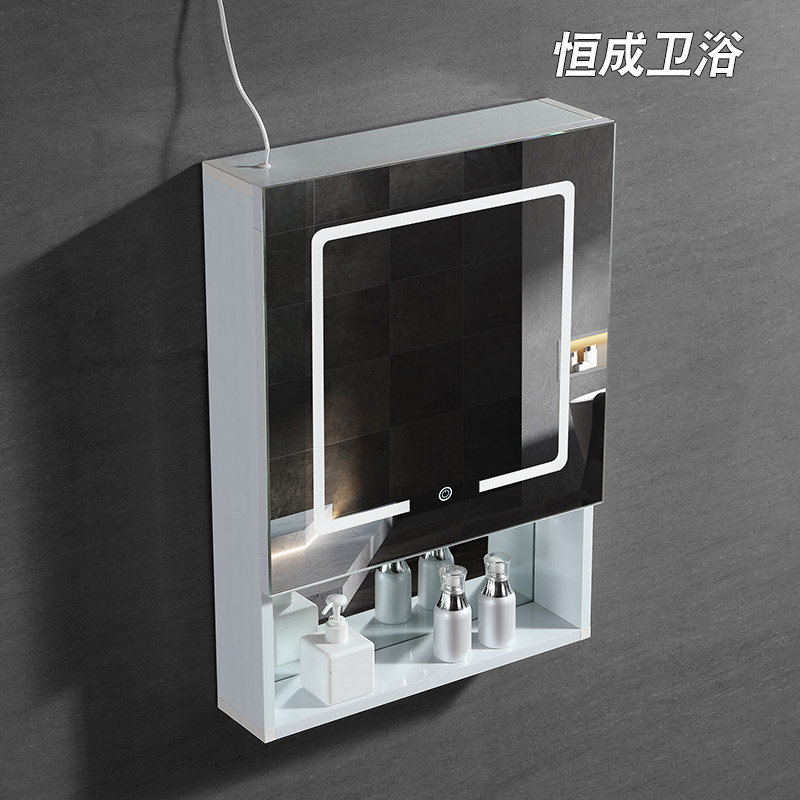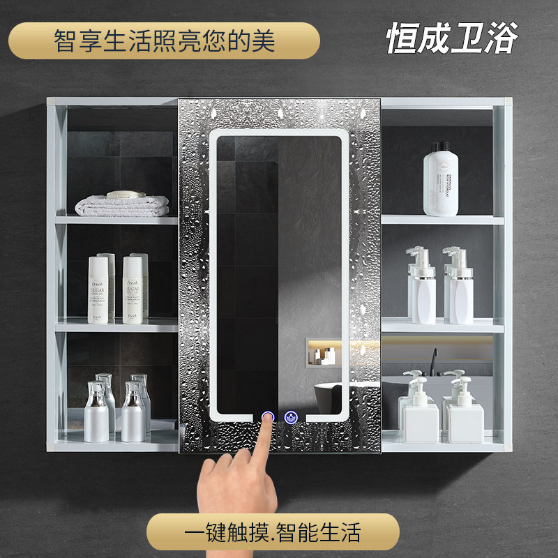 Aluminum alloy smart bathroom mirror cabinet mirror case hanging wall style with lamp anti-atomization makeup room with shelf toilet mirror