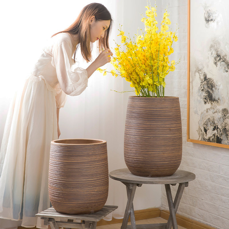 Modern minimalist flower pot Jingdezhen Ceramic floor Ceramics Floor balcony Living room Desktop Gold Ghu Piran Hotel Courtyard Pendulum