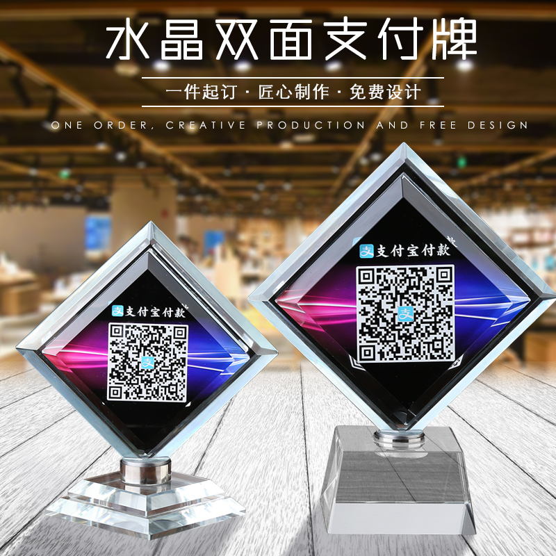 WeChat Merchant Receipt Code QR Code Licensing Table Customized High-end Crystal Rotating QR Code Receipt and Payment Brand Personality Creative Rubik's Cube Money Receipt Code QR Code Card Custom Sticker Scan Code Card