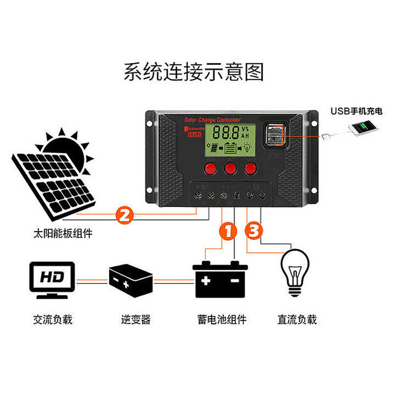 Solar controller 12v24 volt with usb lithium battery 10a-30a photovoltaic panel electrical system charger pwm