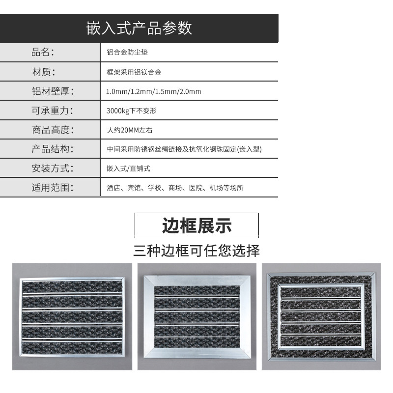 Outdoor aluminum alloy floor mat at the gate of the shopping mall embedded drainage scraping sand anti-slip mat high-end hotel dust removal carpet