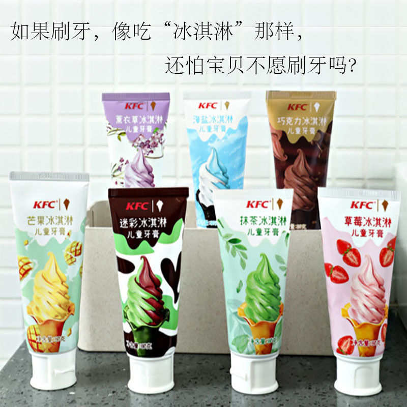 KFC multiple ice cream flavors Children's toothpaste 2 year old Pharyngeal Decki Swallowed Tooth Decay 80g Strawberry Taste