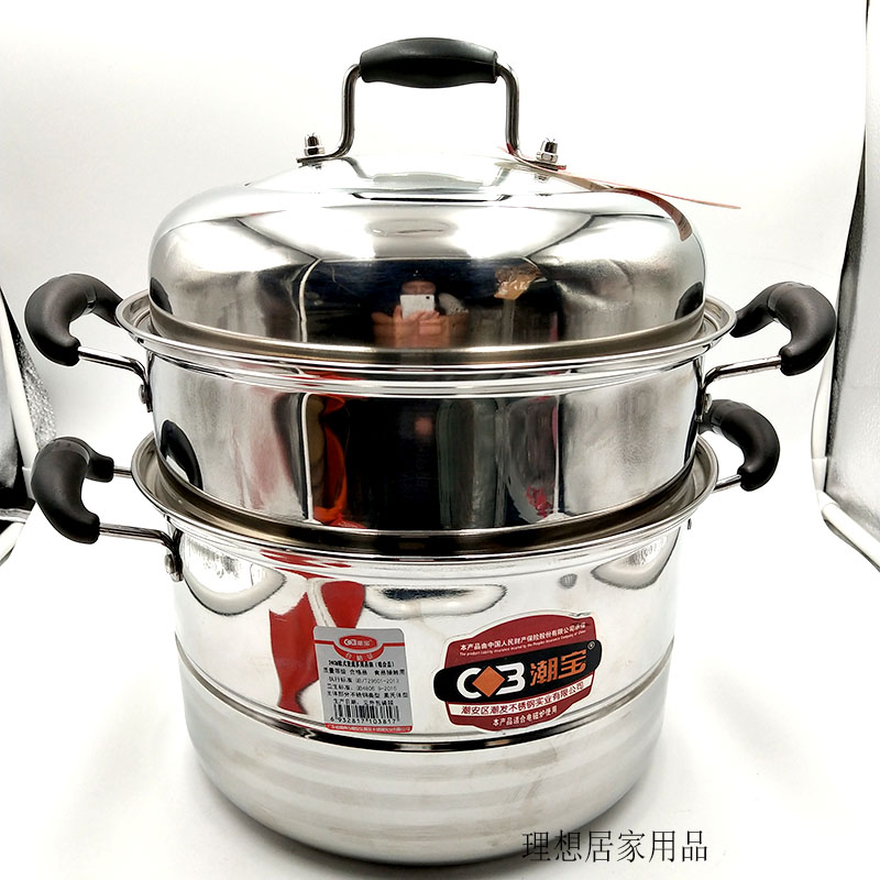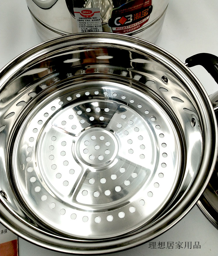 Tidal Treasure Household Large Stainless Steel Soup Pot With Cage Drawer Multipurpose Bag Double Bottom Thickened induction cookers General steam pot-Taobao