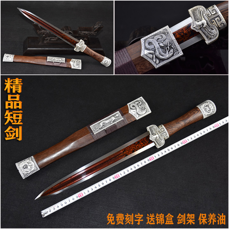 Dragon Springs Short Sword Knife Sword Sword Swordman Sword Han Sword Short manganese steel patterned steel Handmade Tangier Town Residence Defense Arsenal unopened