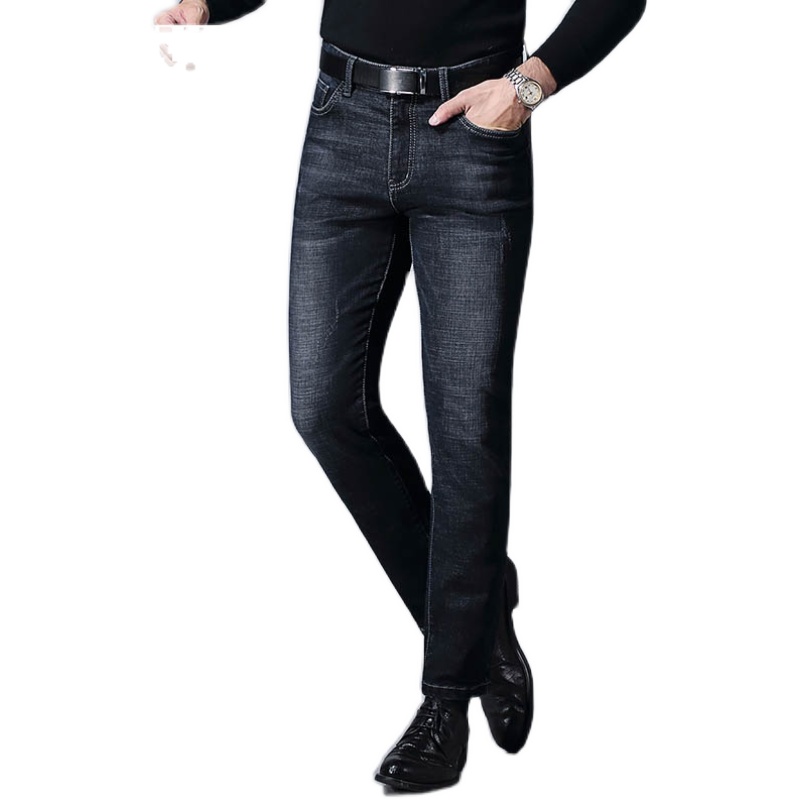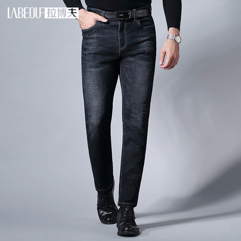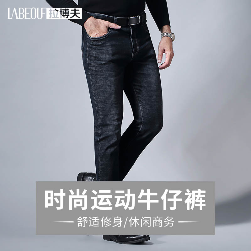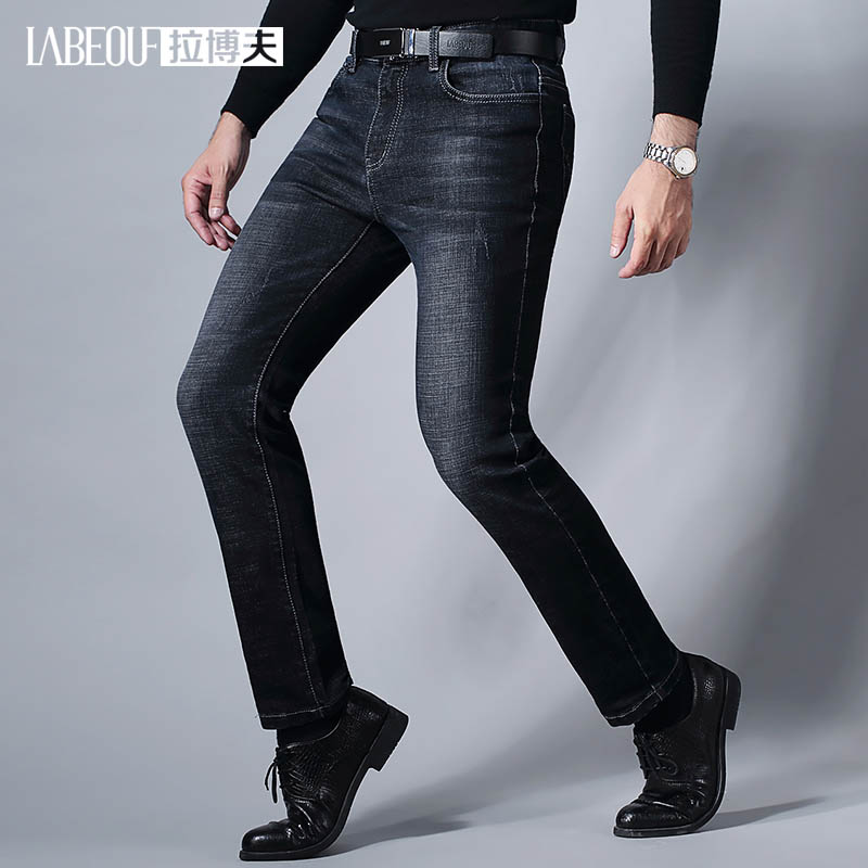 Labov Jeans Male Mid-Body Straight Drum Elastic Slim Fit Pants Multiple Pockets Black Manmade Pants
