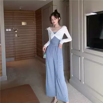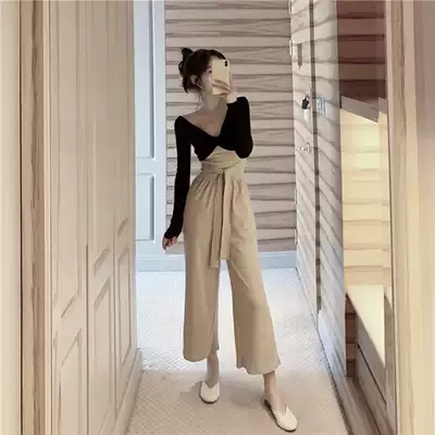 Bandeau jumpsuit women's spring and autumn and summer temperament small Western style jumpsuit casual all-match pants thin wide-legged pants