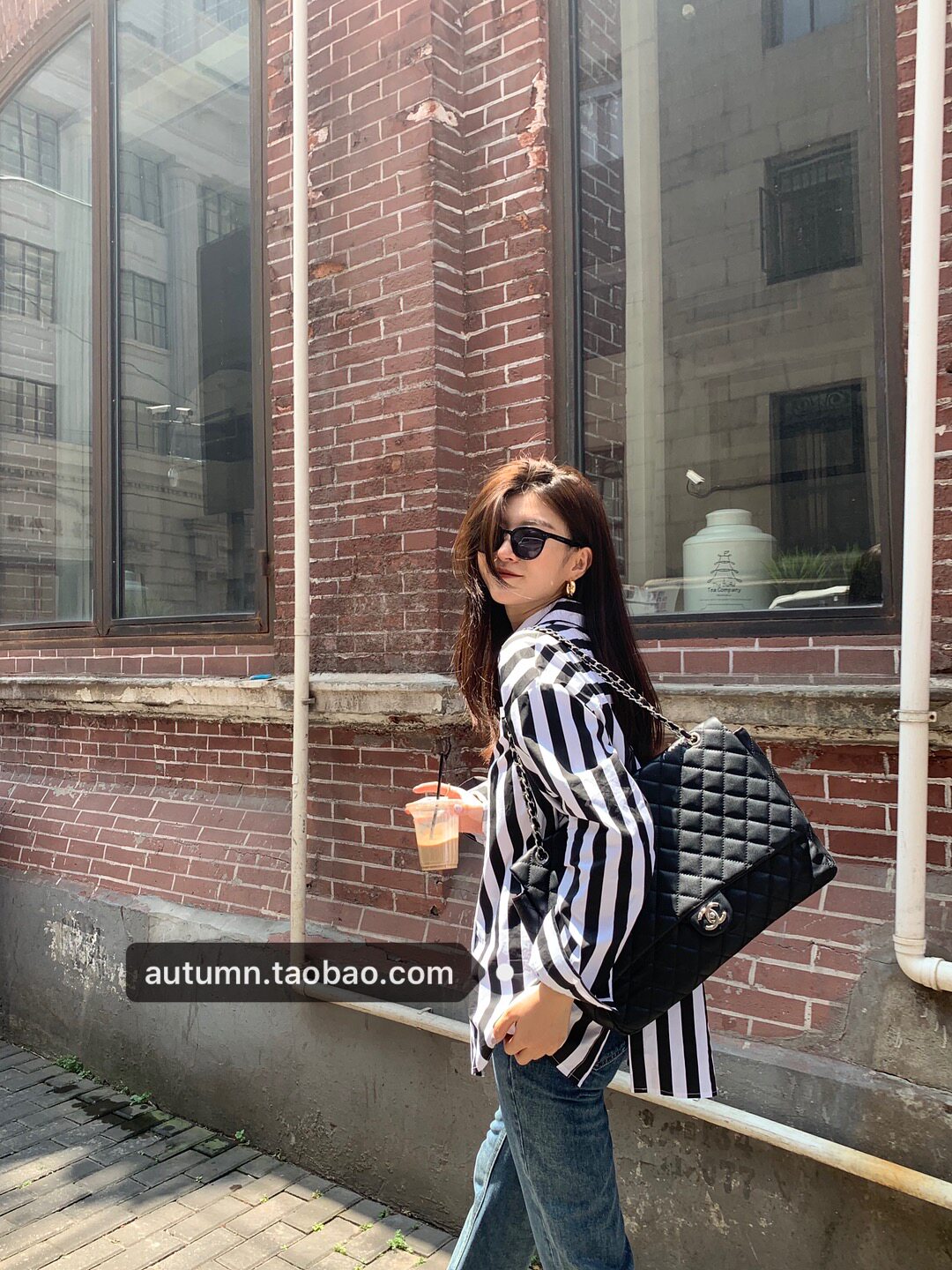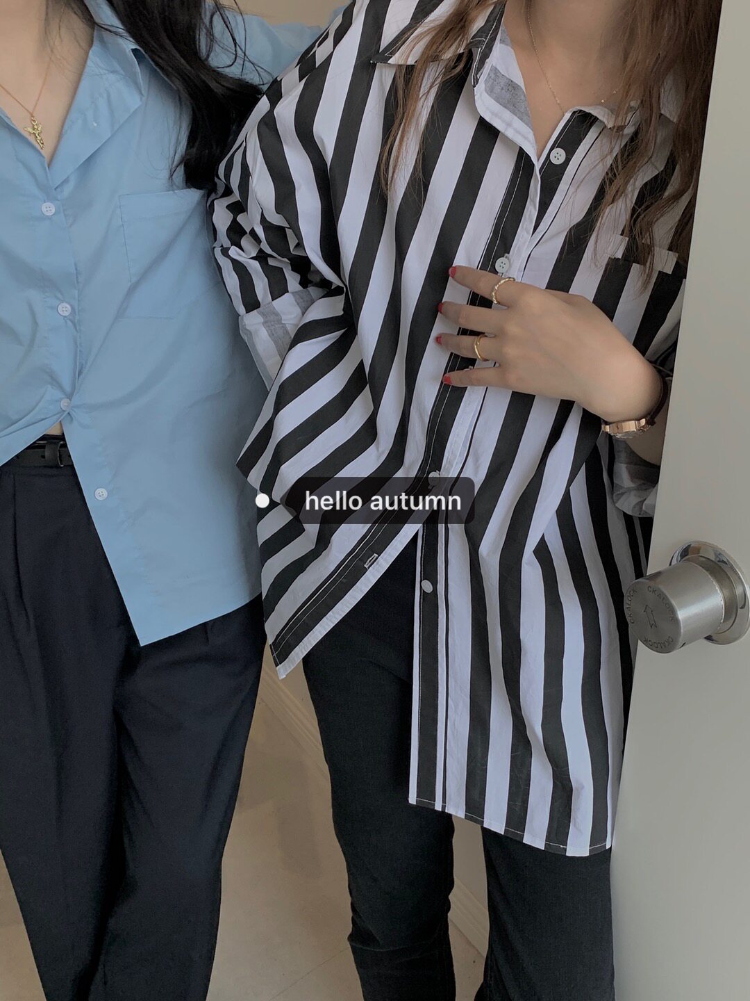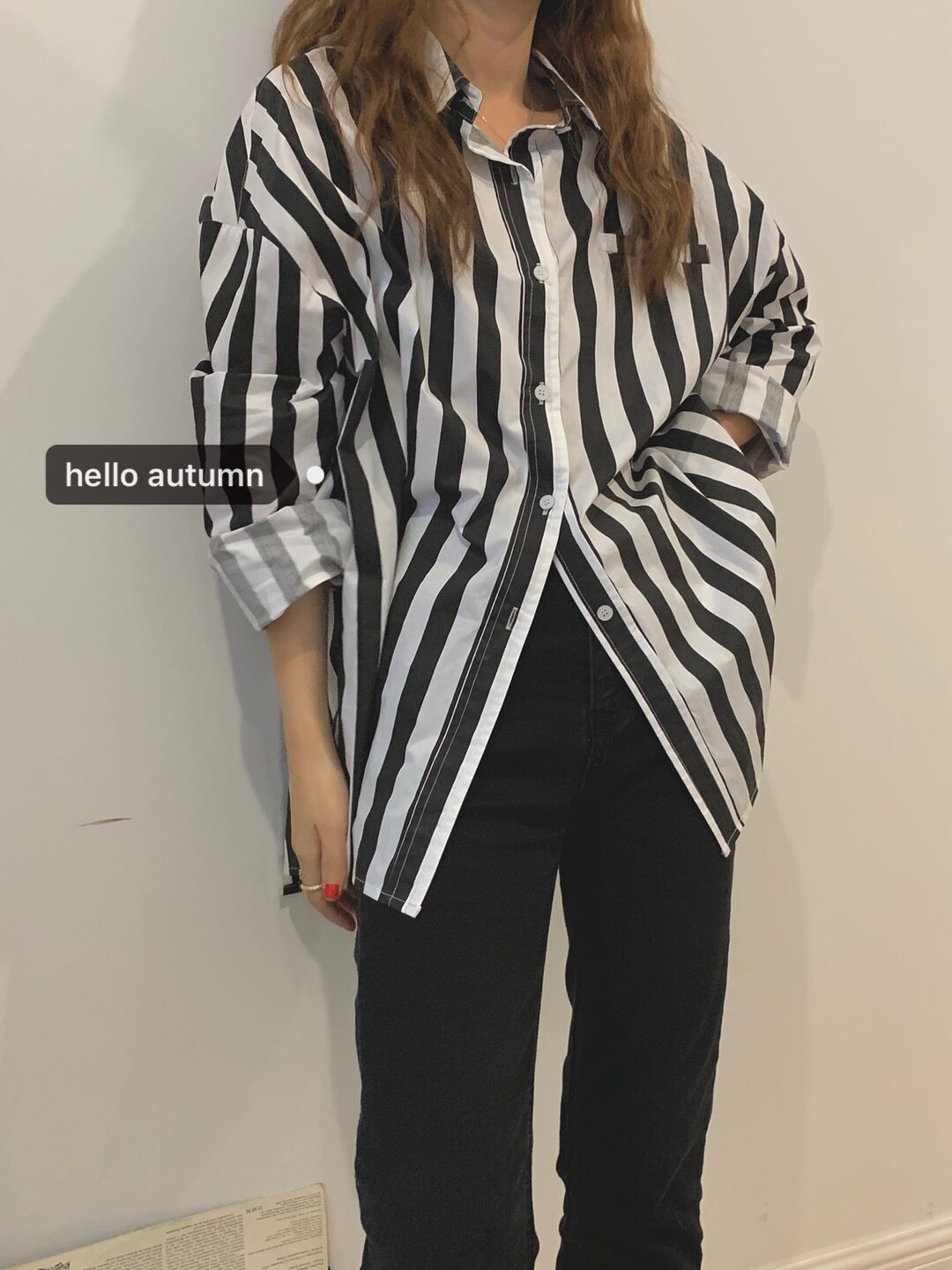 autumn Jun autum black and white thick striped shirt female spring and autumn long sleeve Korean loose versatile design style top