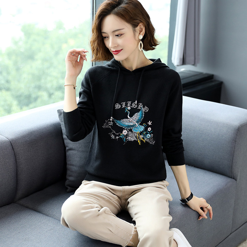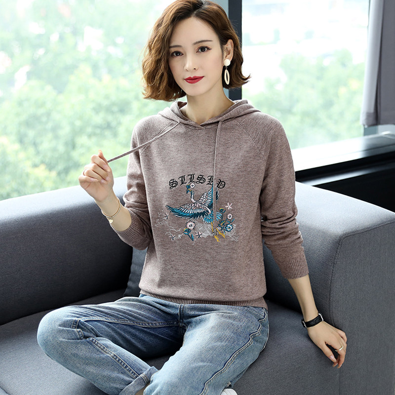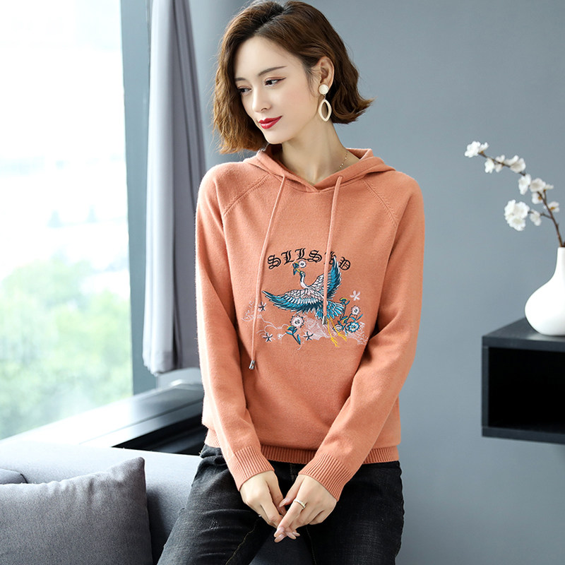 Dituton hooded knitted bottoming shirt autumn 2021 new early autumn sweater hooded ladies sweater top