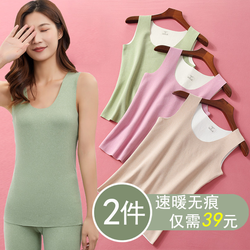 Seamless thermal vest women's double-sided brushed cold-proof bottoming shirt thickened and velvet all-match suspenders autumn and winter inner tops