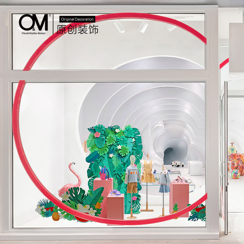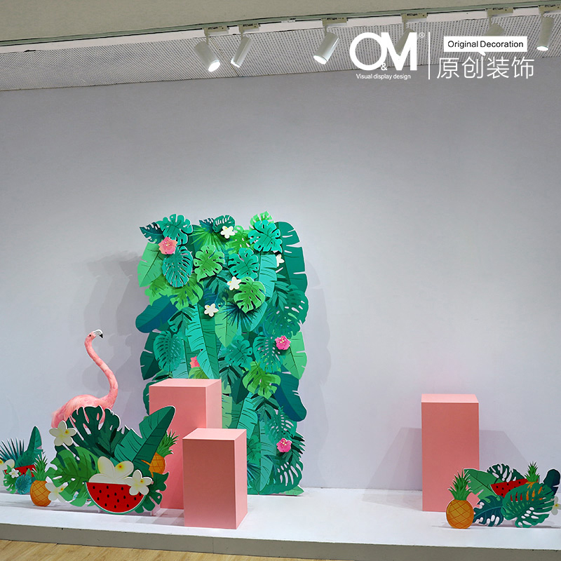 OM decoration summer green planting flamingo theme beautiful Chen decoration children's clothing shop window display children's photography props