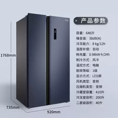 TCL650 L frequency double door refrigerator door household air-cooled frost-free mass oversized energy efficiency