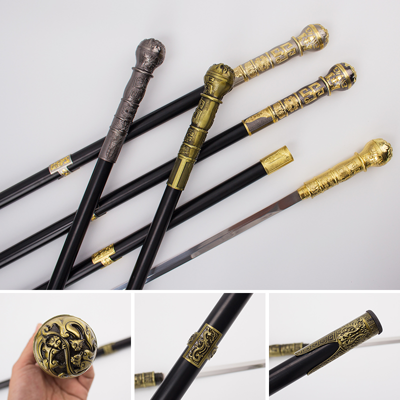 Stainless steel round head cane sword Scepter Sword Chinese Classical Anti-Body Sword Mountaineering Sceptic Stage Props Unopened