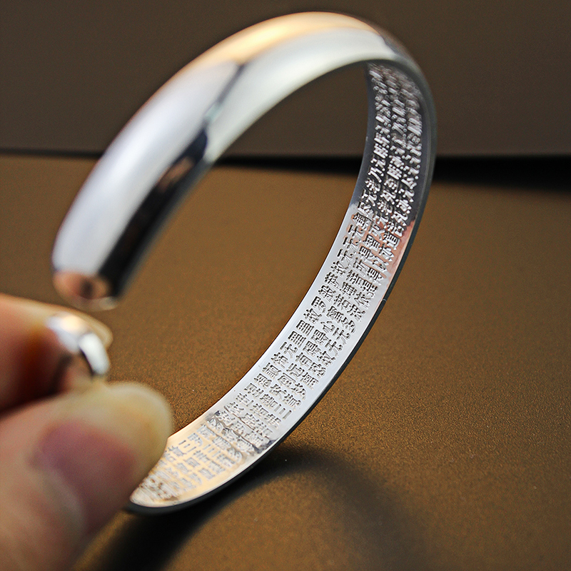 Lao Feng Xiangyun S9999 sterling silver bracelet female opening glossy simple heart Sutra solid silver bracelet jewelry to send mother