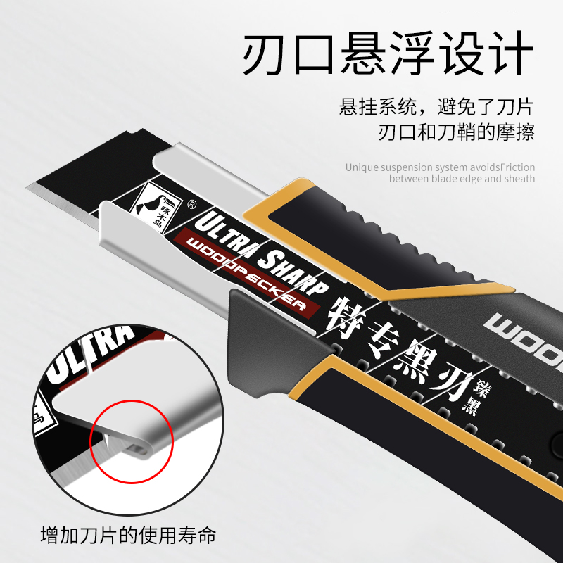 Woodpecker knife holder plastic coated metal large utility knife FD-7814 aluminum alloy heavy-duty cutting wallpaper knife thickened