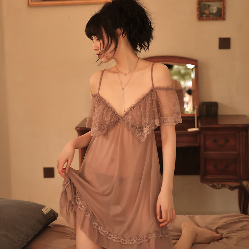 Lady sexy lace transparent yarn sling sleepy skirt fat mm hot teasing pajamas suit female