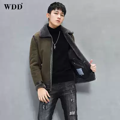 Broken code original ecological leather wool men winter New Haining locomotive leather jacket short jacket thickened jacket