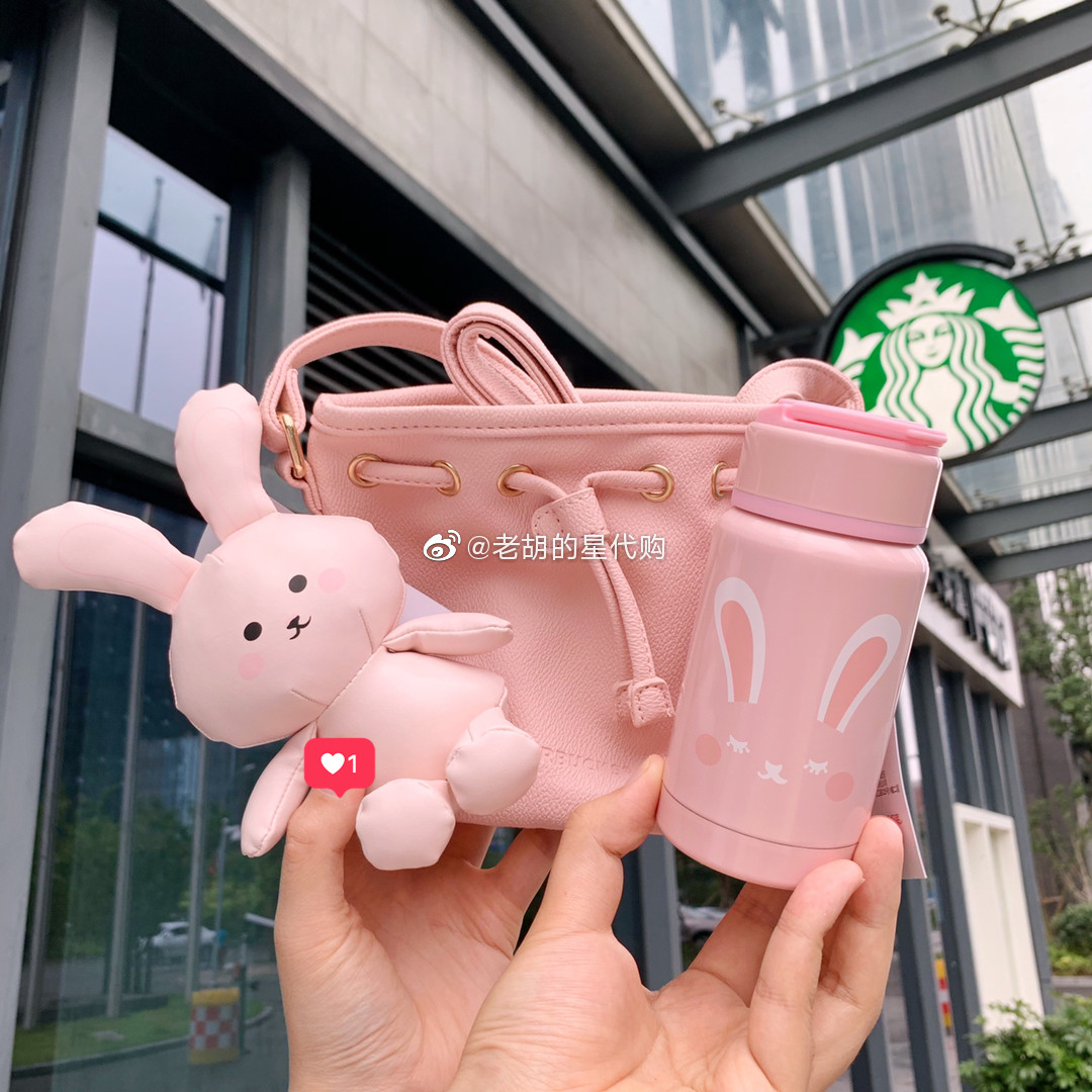 Bag-style insulated cup suitable for girls ~ Starbucks mid-autumn lamb suede bag powder Pink Little Rabbit Bucket Bag