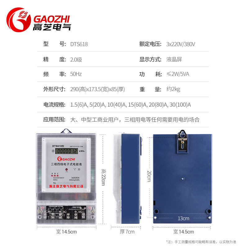 Gaozhi three-phase electric meter 380V industrial digital display electronic high-power three-phase four-wire with transformer watt-hour meter