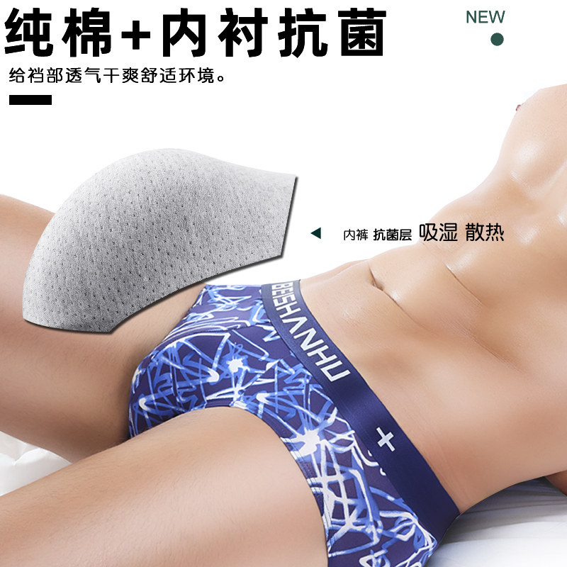 Autumn and winter men's triangular underwear men's pure cotton breathable boys mid-waist shorts antibacterial crotch triangle panties to increase the size