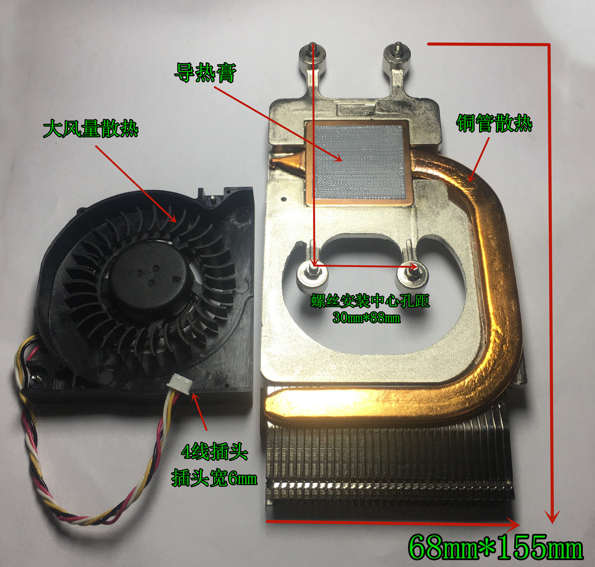 Laptop mobile phone CPU fan thermally conductive copper pipe radiator electronic original radiator 4 patch 12V
