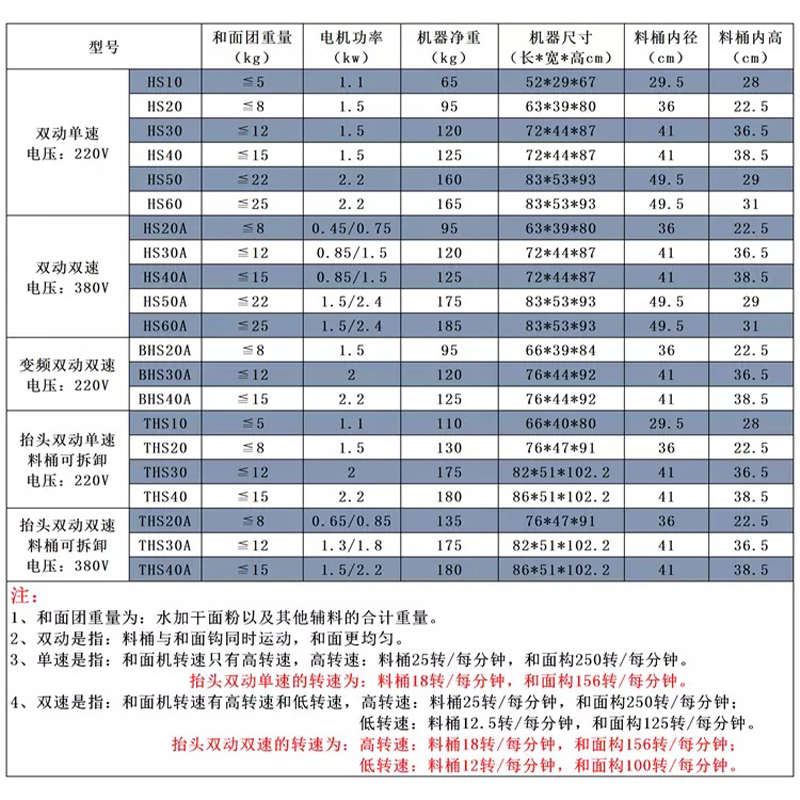 HS10 double action single speed 5 kg dough 220VHS20 double action single speed 8 kg dough 220VHS30 double action single speed 12 kg dough 220VHS40 double action single speed
