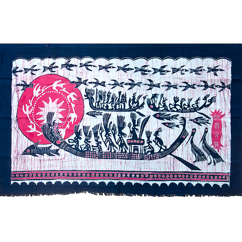 Guangxi Zhuang characteristics folk customs activities scene wax dyed copper drum decoration canvas hanging painting