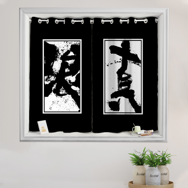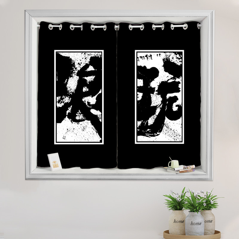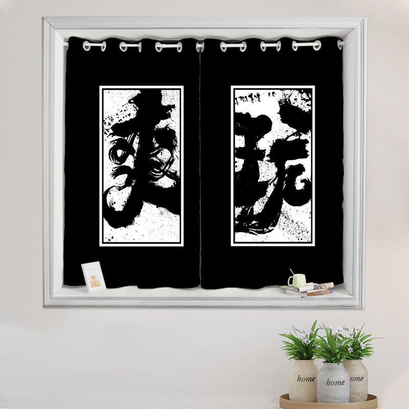 Finished short curtain hemp art sunscreen Chinese style study children's room balcony bay window short curtain half curtain full blackout curtain