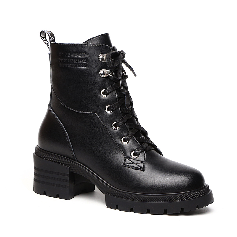 Jinte Belle leather Martin boots women's thick heel 2020 autumn and winter new British lace-up motorcycle short boots riding boots