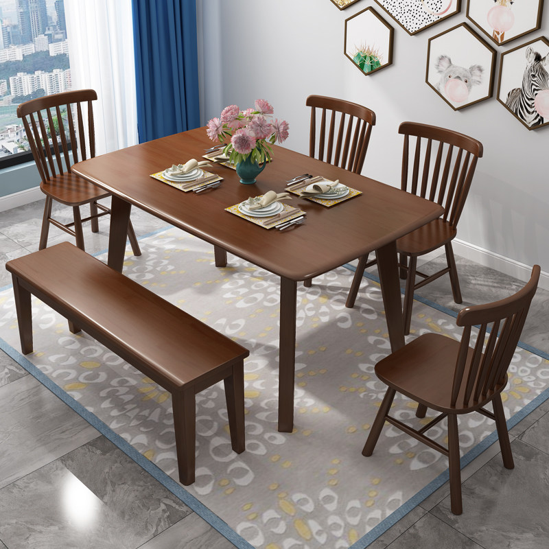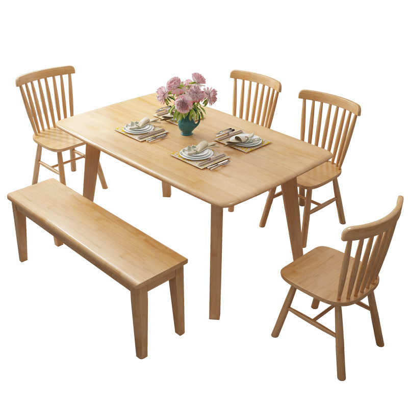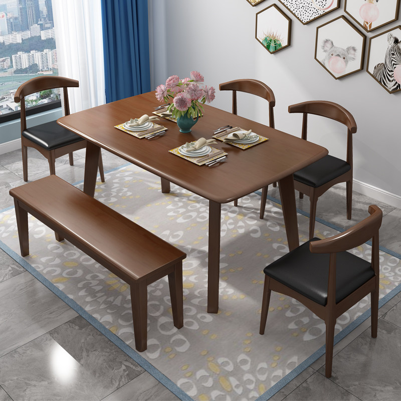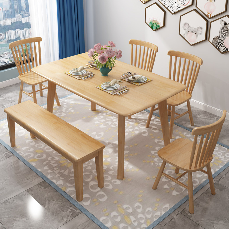 Nordic solid wood dining table and chair combination home small apartment light luxury western dining table rectangular dining table with dining stool