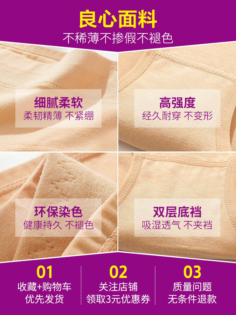 Mid-waist panties, women's pure cotton, breathable and seamless