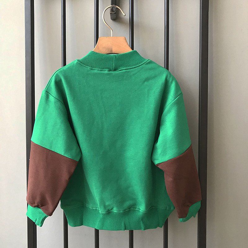 Children's autumn clothing new boys' half-high collar long-sleeved sweater Korean style foreign style hit color small and medium children's clothing cartoon cotton top