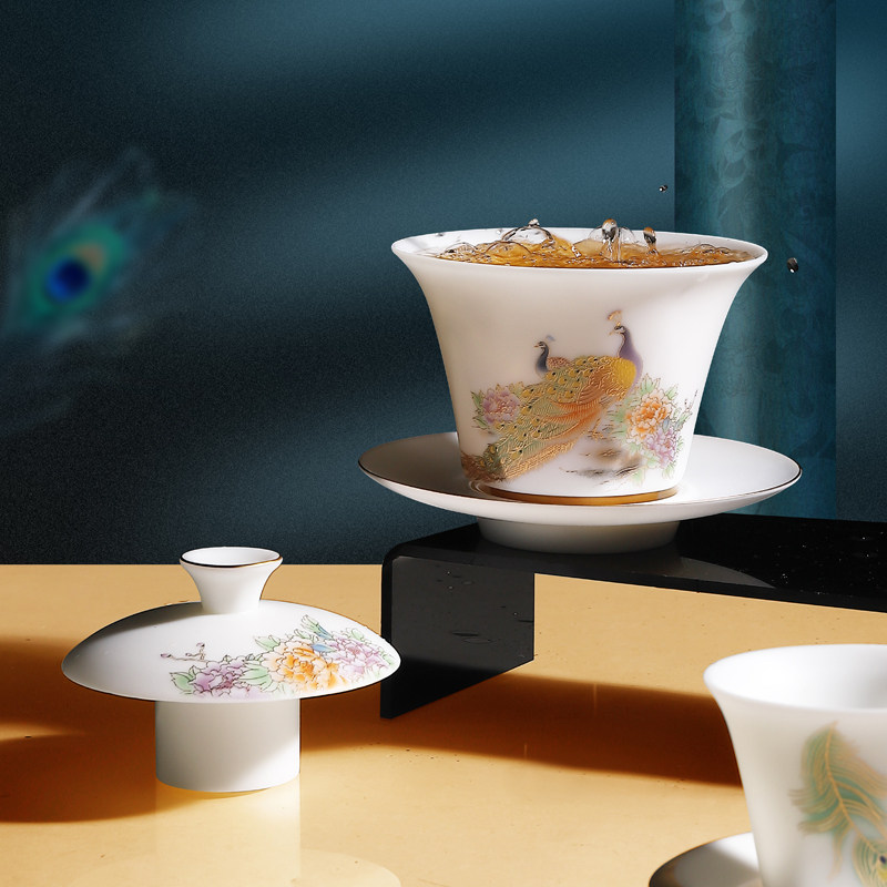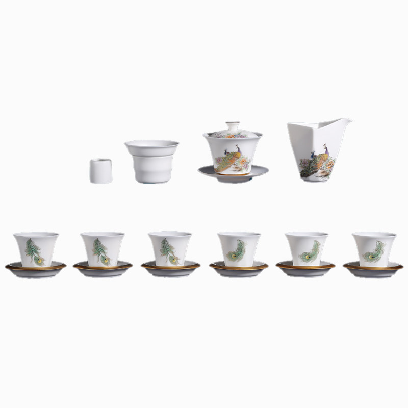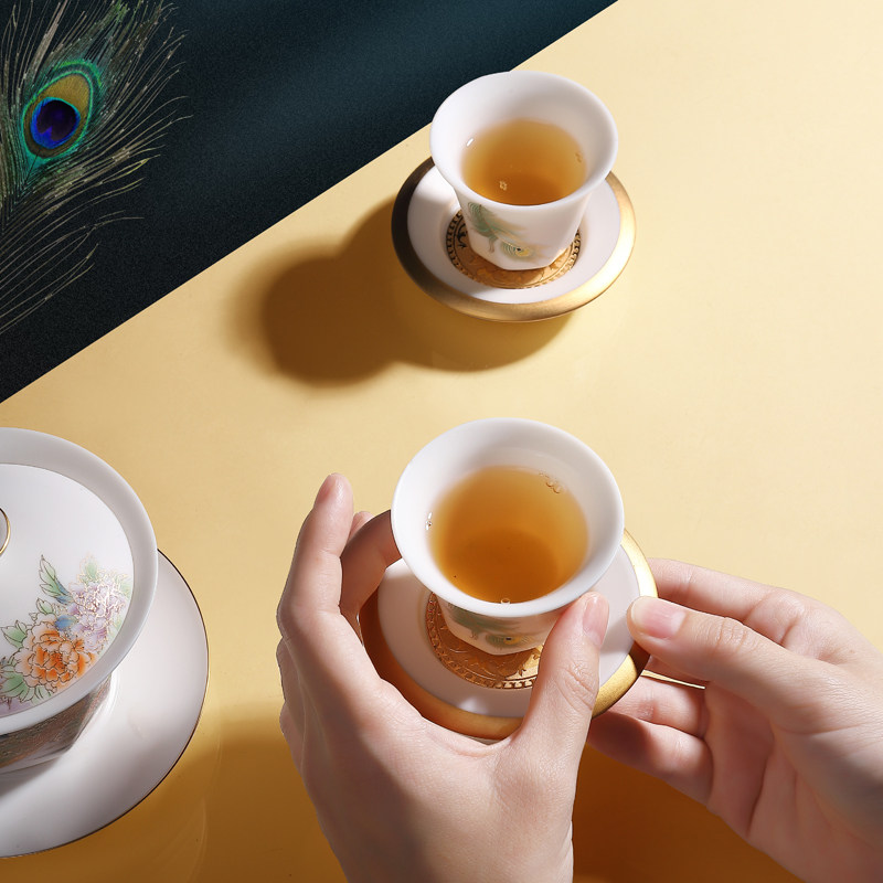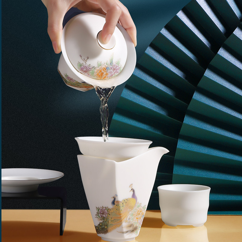 Tea Set Group Goat Fat Jade Porcelain Defied White Porcelain Kung Fu Cover Bowl Teapot Cup Mat Justice Cup Upscale Gift box Courtesy Kit Gift