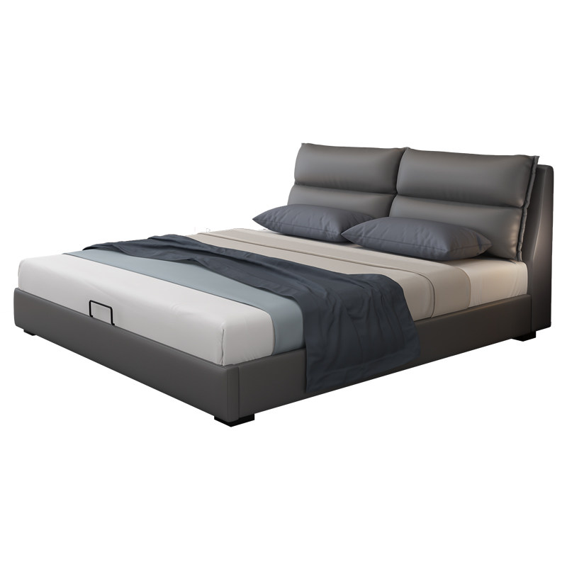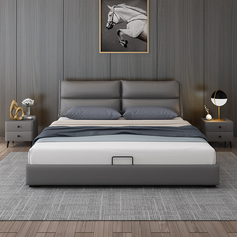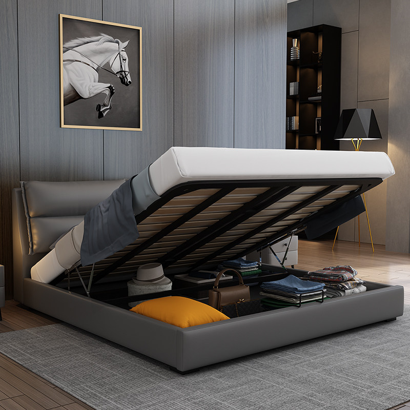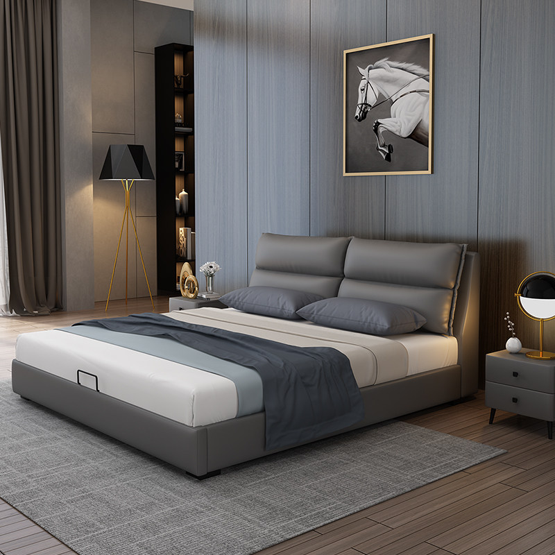 Italian minimalist minimalist modern master bedroom 1 8 m genuine leather art double soft bunk bed Nordic small family type 1 5 containing bed