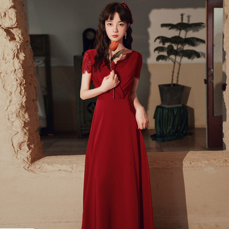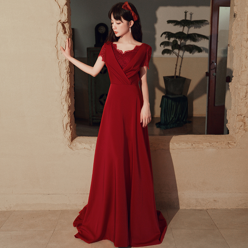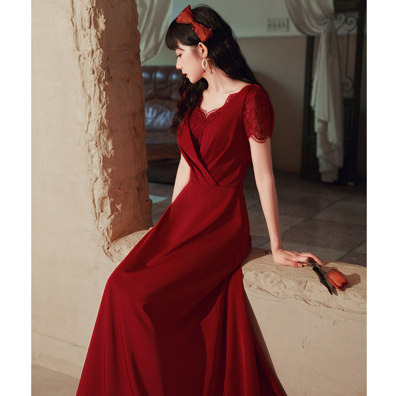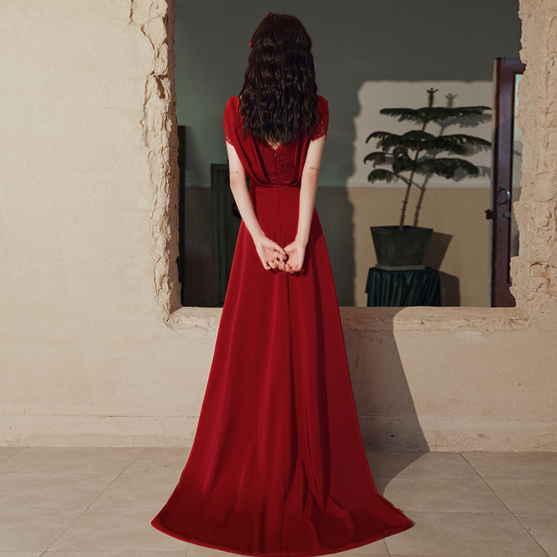 Atmospheric Toast Bride 2020 New Wedding Gown Female Long Version Trailing Back Door Wine Red Ocean Dress Engagement