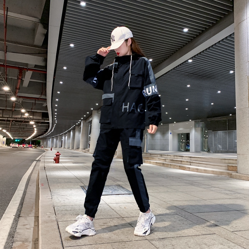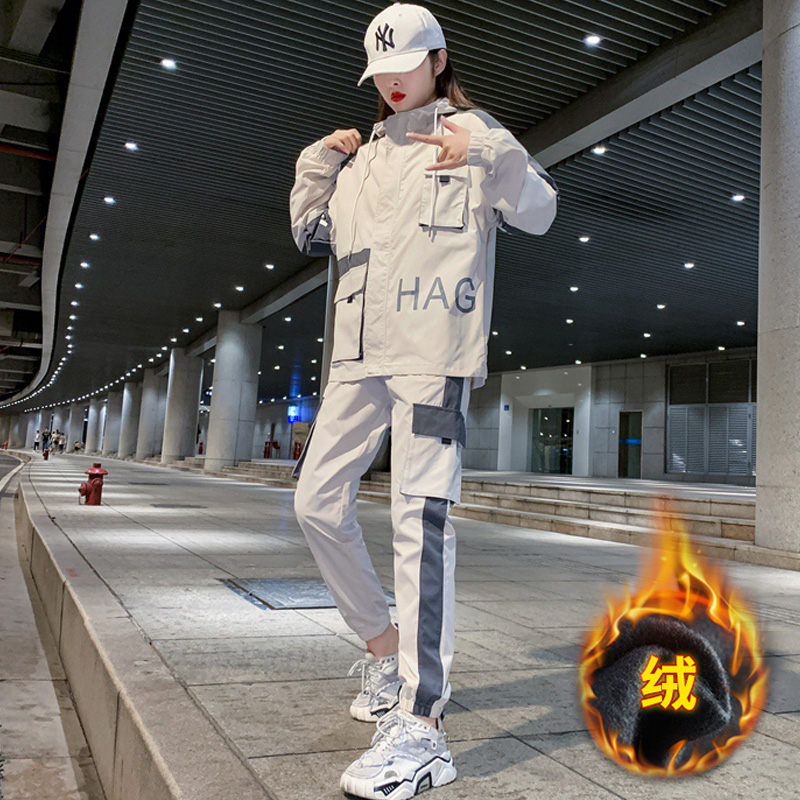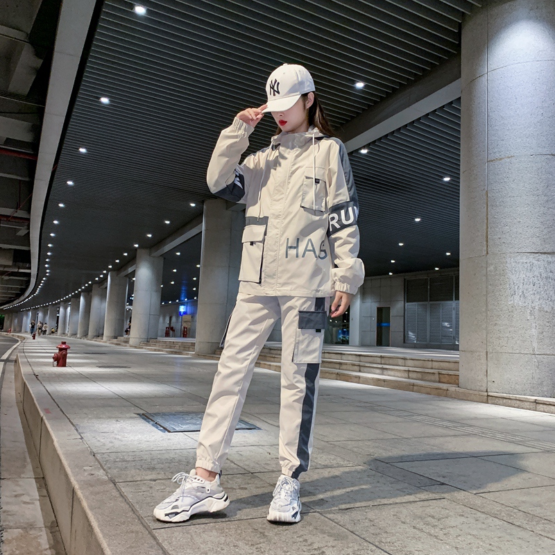 Tooling suit female trendy autumn coat 2022 new spring and autumn Korean version loose bf fashion casual student two-piece suit