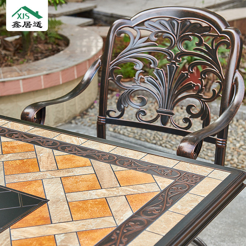 Cast Aluminum Outdoor Table And Chairs Casual Eurostyle Villa Courtyard Outdoor Waterproof Marble Cast Aluminum Barbecue Dining Table And Chairs Combination