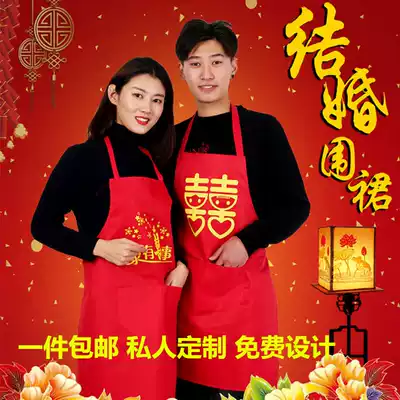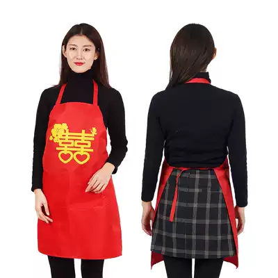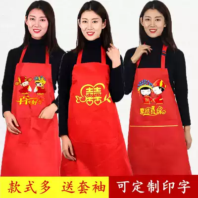 Festive red wedding apron printed custom logo men and women kitchen wedding party wedding gift waterproof sleeve waist