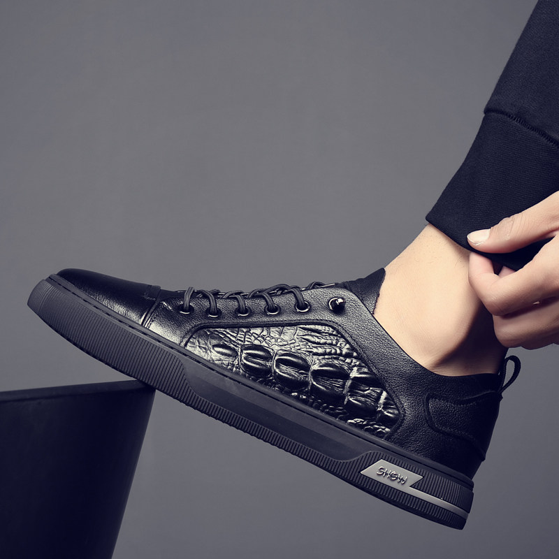 Men's shoes trendy shoes 2021 new autumn leather British all-match shoes men's leather shoes men's casual shoes crocodile pattern sneakers