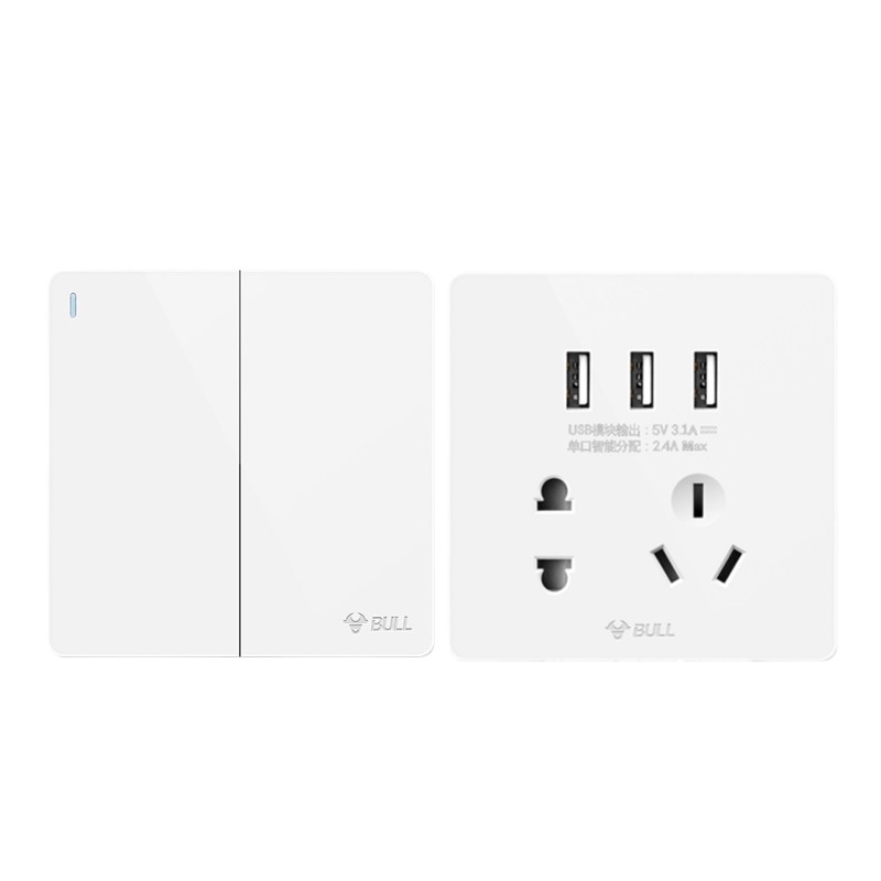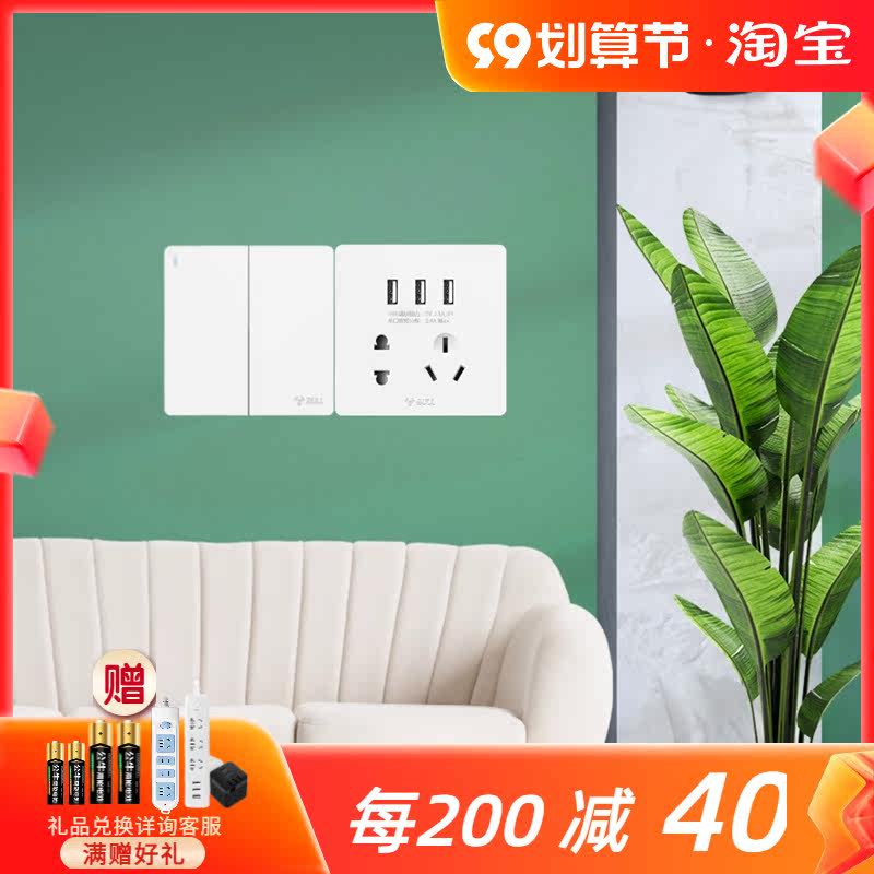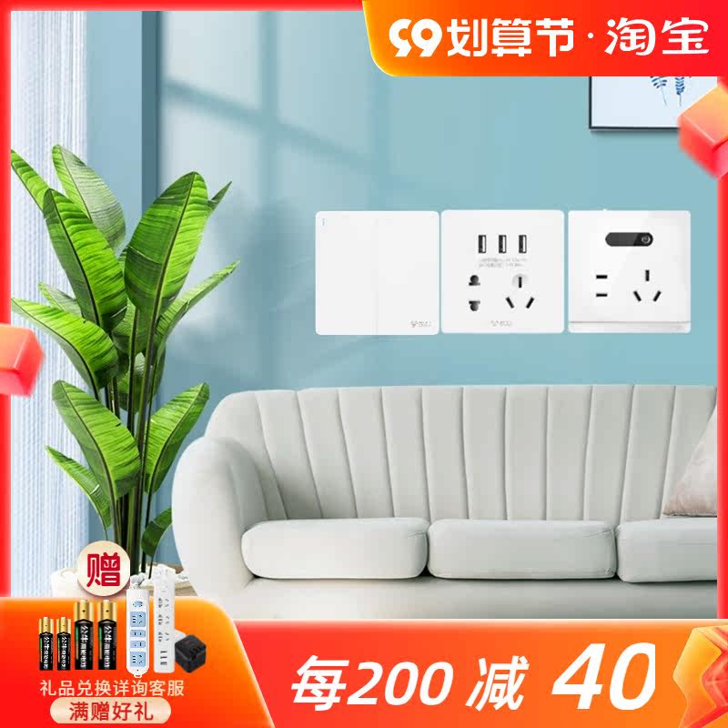 Positive five-hole socket slanted five-hole socket five-hole socket with induction foot lamp 30W fast charge five-hole socket 3USB five-hole socket one open single control switch one open double cut switch one open multi-control midway switch two open single