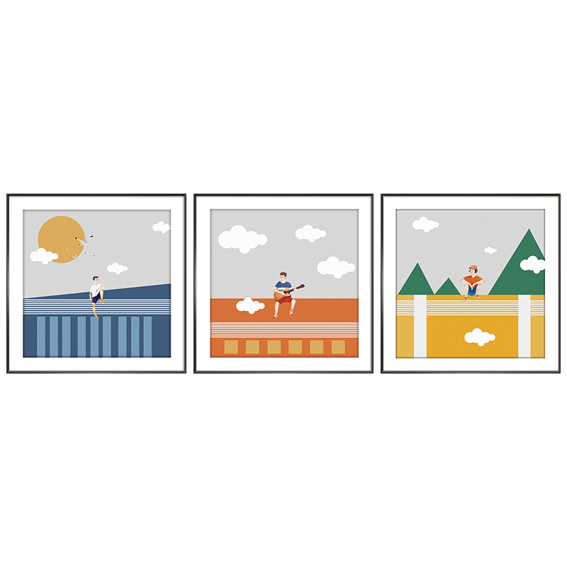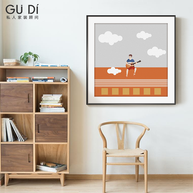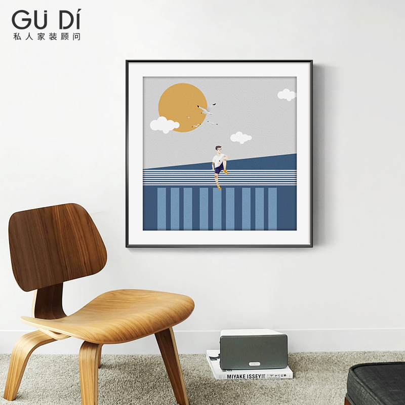 Nordic small fresh combination living room decorative painting simple study painting sofa background wall bedroom bedside mural
