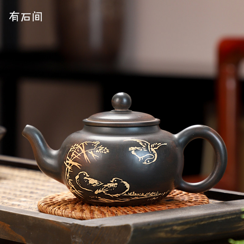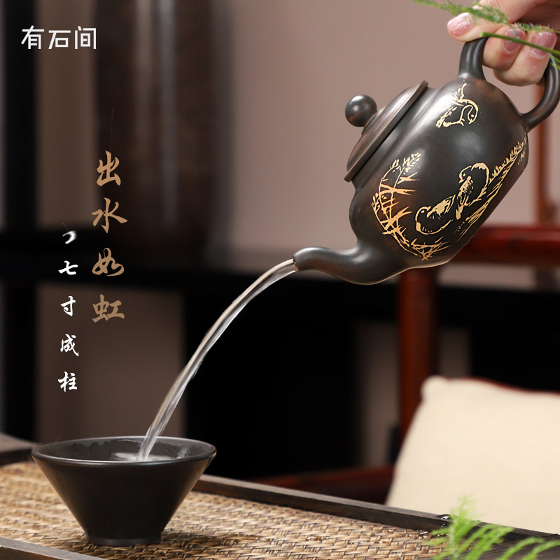 With stone-to-stone mud Xingtao tea set Fill the clay Lonely Pint Pot Guangxi Provincial Master Zhong Yi Liu Fruity Pure Artisanal Teapot