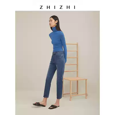 ZHIZHI to know ink cloud volcanic rock jeans women 2021 new autumn black slim stretch retro