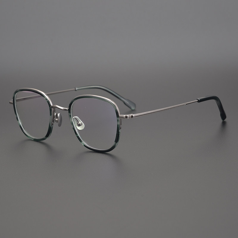 Light luxury green tortoiseshell color handmade plate medium gold pure titanium square frame literature and art style youth myopia glasses frame men and women fashion