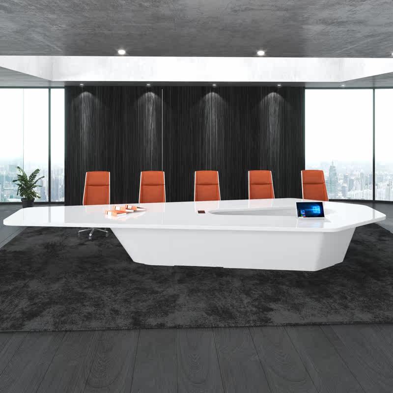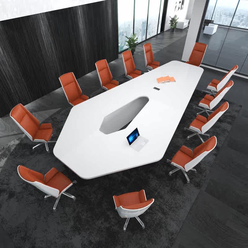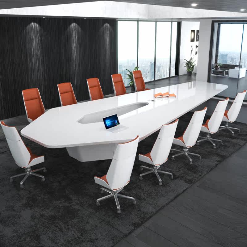 White Meeting Table Fashion Brief Modern Desk Large Conference Long Table Baking Varnish Negotiate Table And Chairs Combined Atmosphere