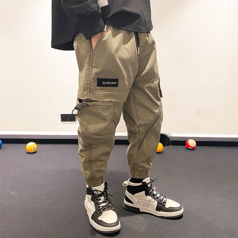Boys' pants Spring and Autumn Children's Casual Fried Street Cargo Pants Tide 2021 New Plus Velvet Boys Middle-aged Boy Korean Version