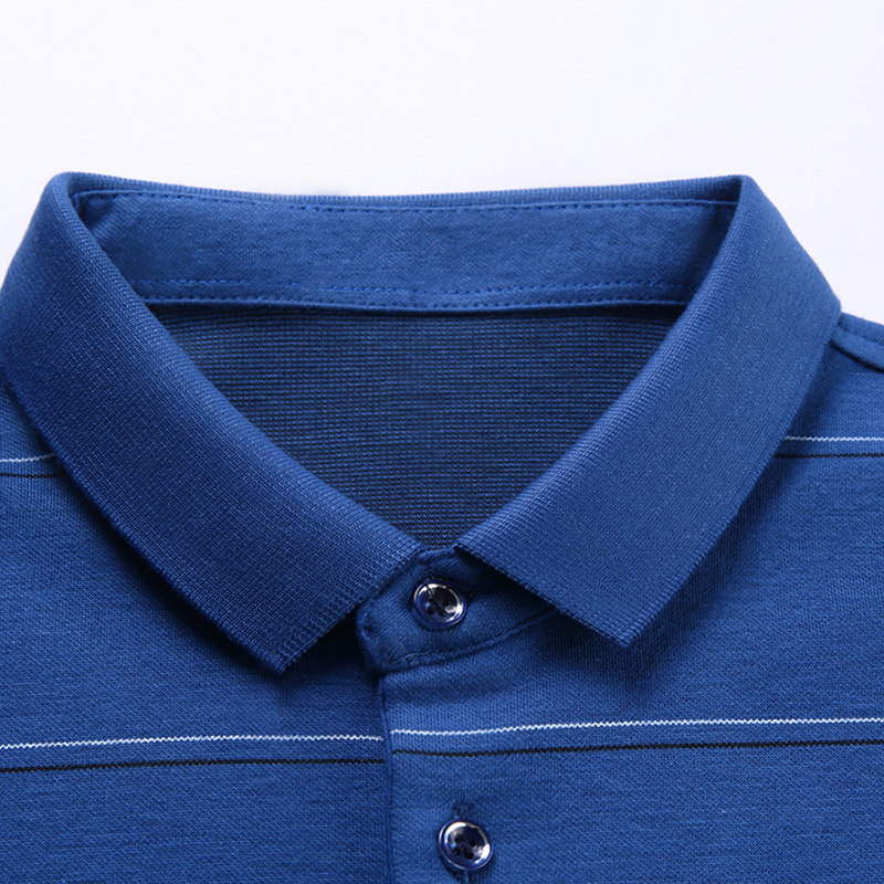 Dad autumn long-sleeved cotton T-shirt Middle-aged men's casual striped Polo shirt Spring and autumn men's thin top
