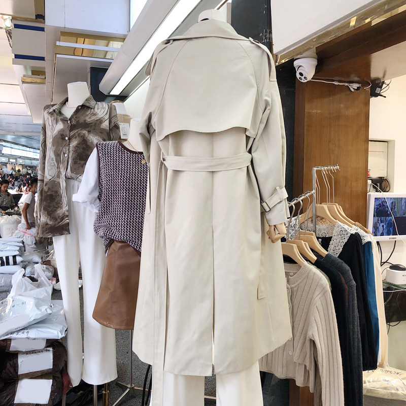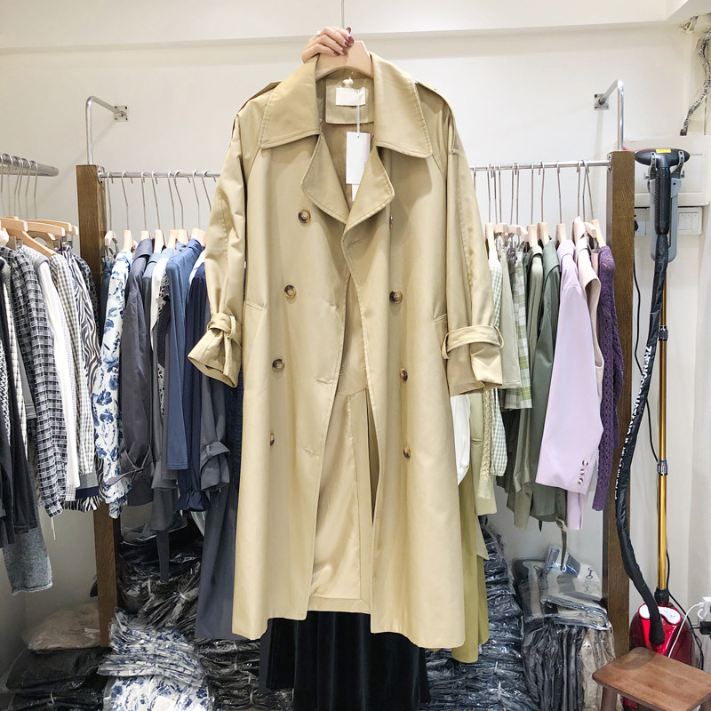 2022 Dongdaemun women's new Korean ins spring big lapel temperament waist long version solid color loose windbreaker