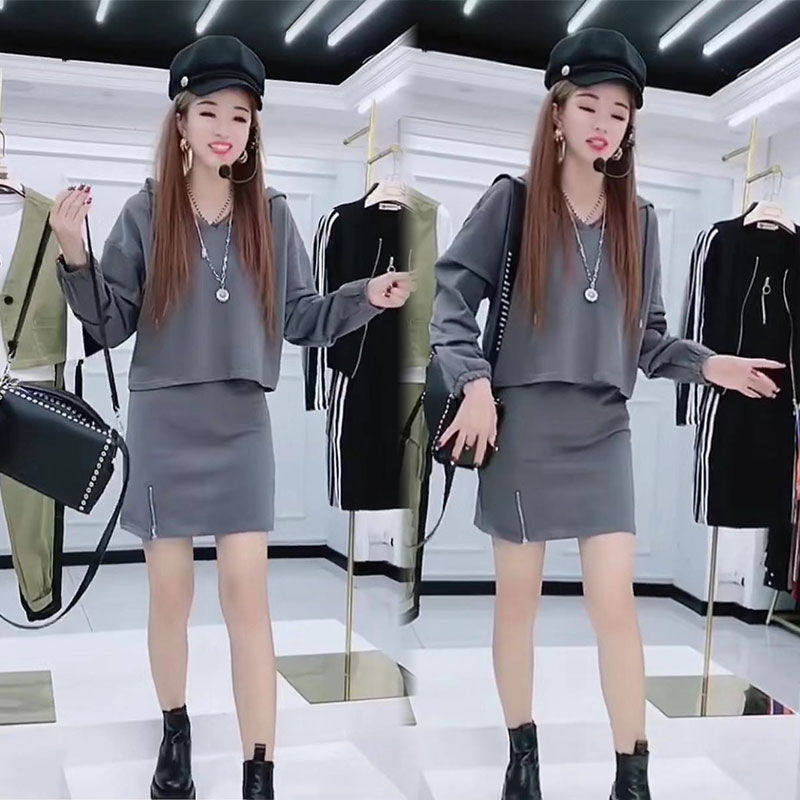 2022 spring new casual hooded sweatshirt hip skirt fashion two-piece sports suit fashionable women's trend